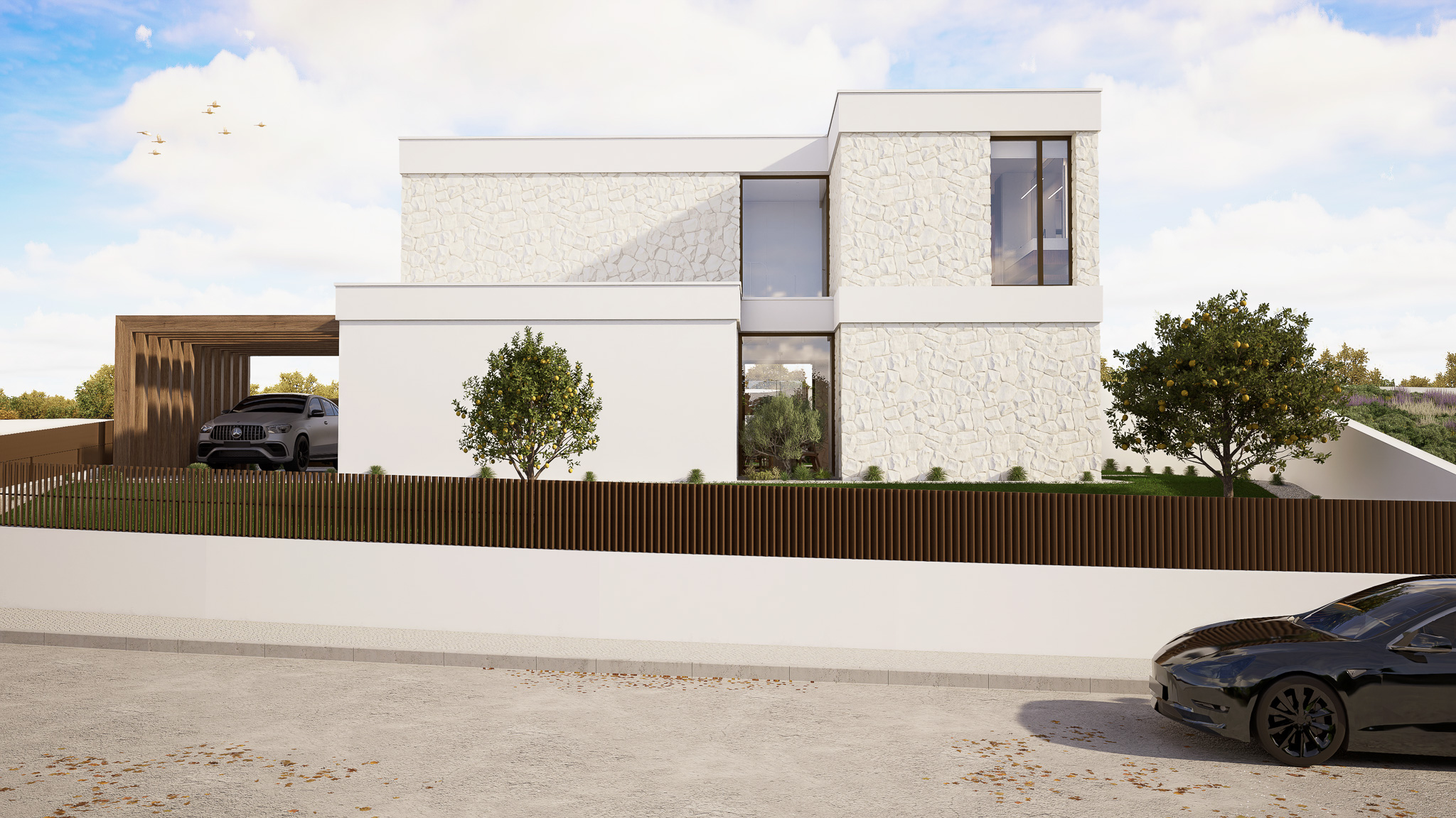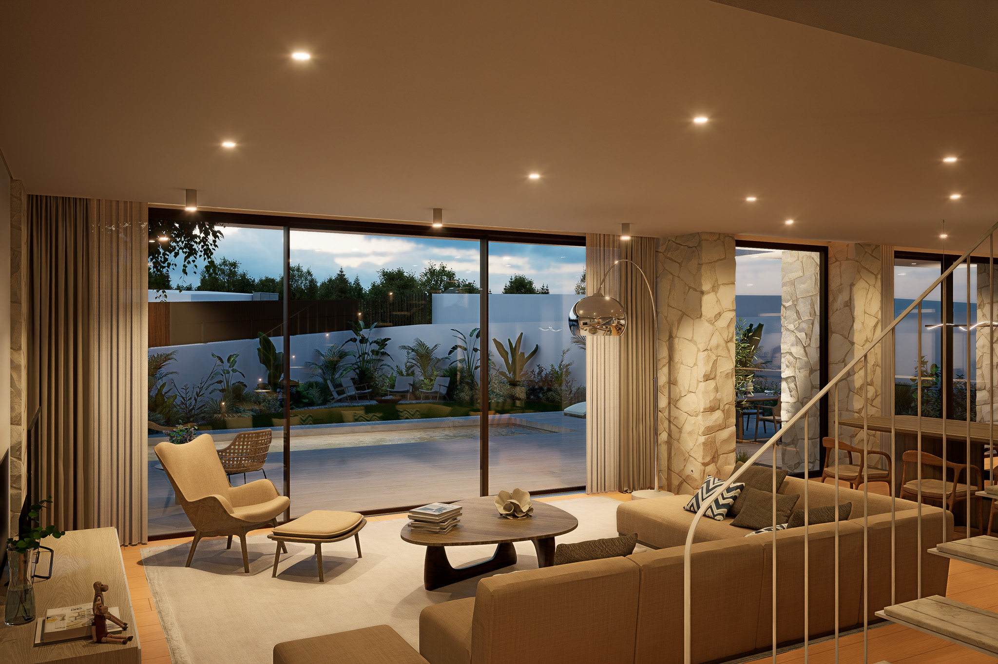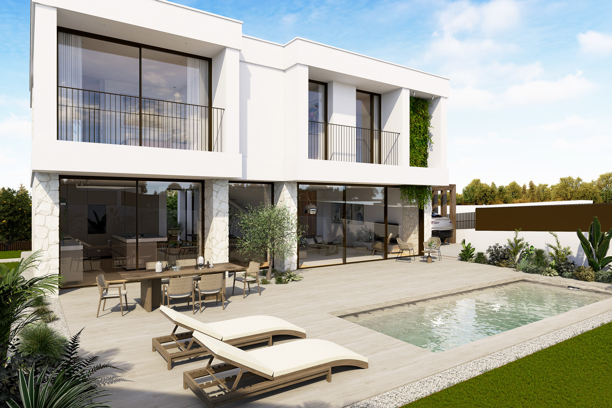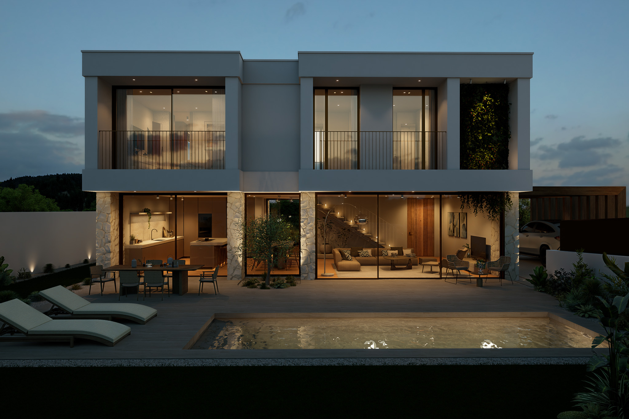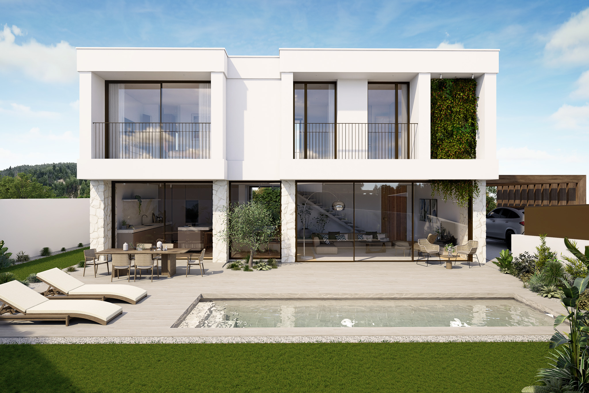 A Villa 22 afirma-se como uma moradia de arquitetura contemporânea, marcada por linhas puras, equilíbrio formal e uma relação fluida entre interior e exterior. O projeto foi concebido com uma atenção rigorosa ao detalhe, privilegiando o conforto, a elegância e a harmonia espacial. Cada elemento é pensado para proporcionar uma experiência de habitar que alia